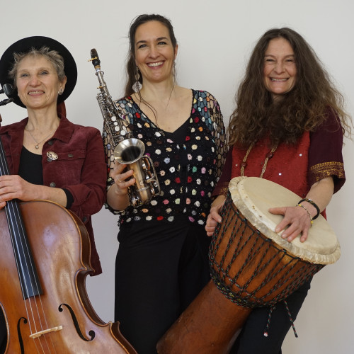 Drei Weltbürgerinnen aus Hessen präsentieren ein abwechslungsreiches musikalisches Programm mit rasanten Rhythmen, sehnsüchtigen Melodien und jazzigen Anklängen, in spannenden und eigenwilligen Arrangements. Mit ansteckender Spielfreude begeben wir uns auf eine musikalische Reise, die von Mittel- Süd und Osteuropa in den Orient und nach Nord und West-Afrika führt.
