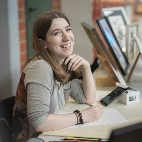 Mein Name ist Annika Schmitt und ich habe mich während meines Architekturstudiums 2019 als Auftragszeichnerin selbständig gemacht. Was als kleiner Nebenjob angefangen hat wurde zur Berufung und so arbeite ich mittlerweile hauptberuflich als Künstlerin.