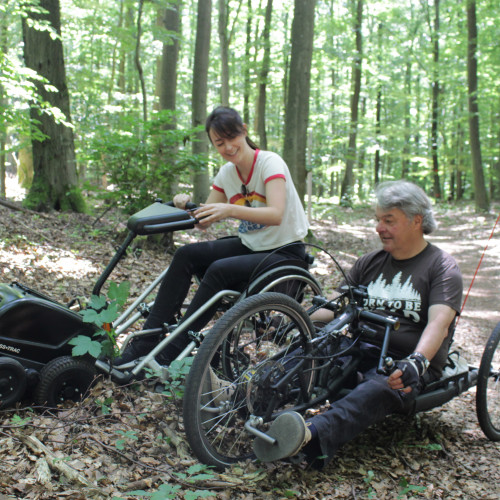 Uns gibt es seit 2018. Wenn wir nicht draußen unterwegs sind, arbeiten wir zu zweit in einem kleinen Büro in Friedberg/Ockstadt. Martin Fischer nutzt seit etwa 30 Jahren den Rollstuhl mit Zuggerät oder sein Handbike, um sich draußen zu bewegen. Karoline Fischer ist Kommunikationsdesignerin und betreut unsere Webseite und den Instagram-Kanal.
