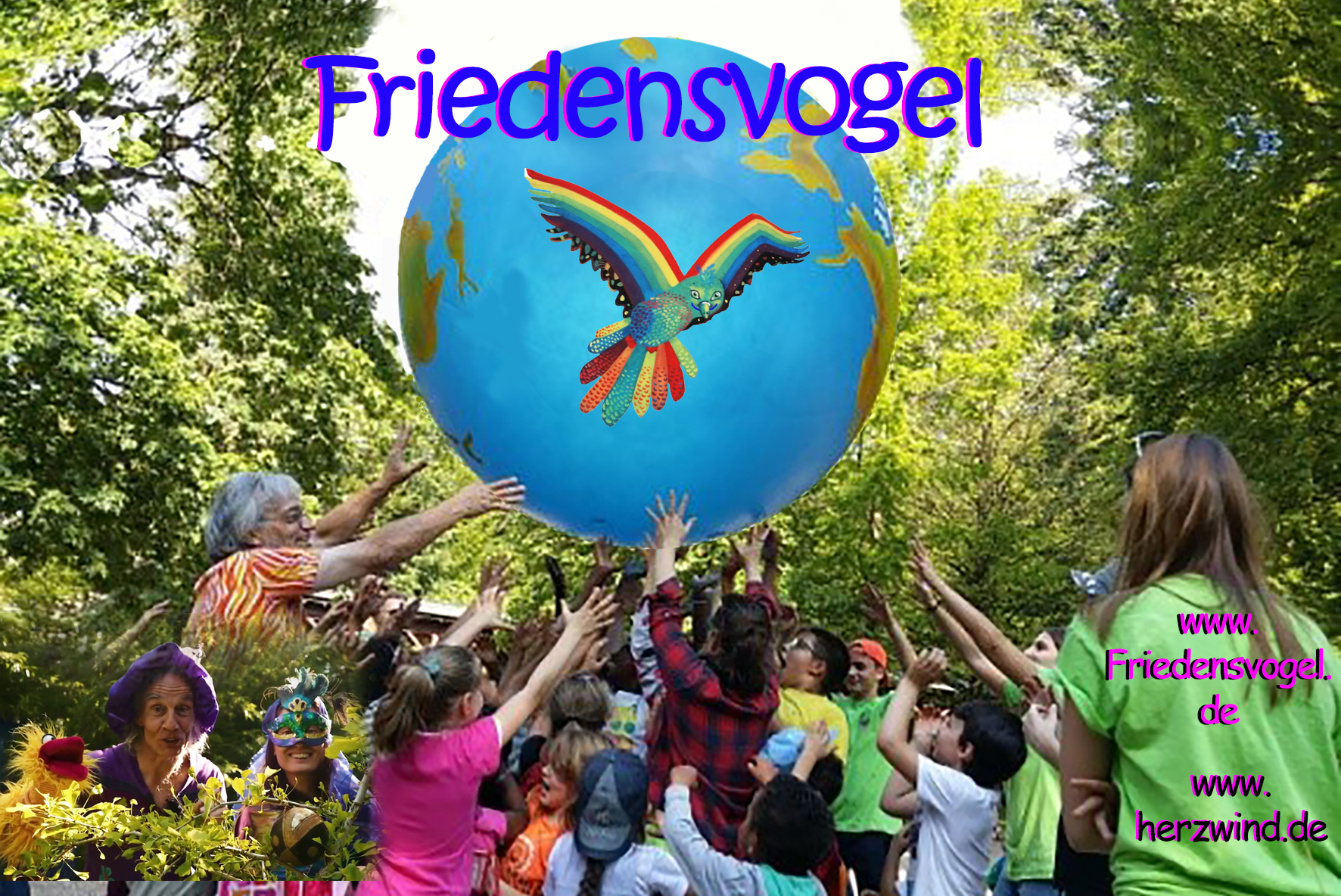 Kinderaktionen: Mit meiner „Phantasiothek“ habe ich seit 1995 bereits über 1.000 Kinderaktionen durchgeführt. (Mobiler Spielepark, Fantasieabenteuer, Mitmach-Kindertheater bis 600 Kinder pro Aufführung). Daraus ist das Kinderprojekt „Friedensvogel“ entstanden, mit Aktionen für Frieden und Umwelt.