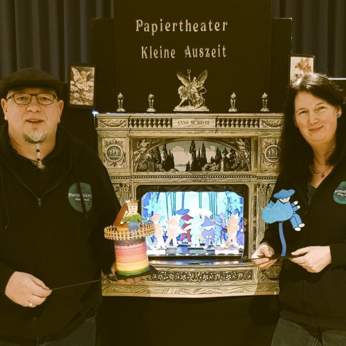Unser Programm umfasst Aufführungen für Menschen jeden Alters und ist thematisch breit gefächert. Ein Zugpferd ist unser Stück zu Toleranz & Vielfalt „Kennt ihr Blauland?“ Die Kernaussage. „jeder ist gut so wie er ist! Jeder darf in seiner Farbe (ob Seelen- , Haut- oder Persönlichkeitsfarbe) leuchten!“ wird hier kindgerecht (für Kinder ab 2 jahre) erzählt, spricht aber Erwachsene nicht weniger an und sorgt auch bei diesen für Emotionen und Begeisterung. Drei historischen Märchen, nachproduziert anno 1887, laden zu einer Zeitreise in diese Zeit des Kaiserreiches ein und sprechen, in Sprache und Musik dieser Zeit, eher ein erwachsenes Publikum an. Theodor Storms „Das Märchen von der Regentrude" thematisiert den Klimawandel und einen nachhaltigen Umgang mit der Natur und Ressourcen. Unser Repertoire umfasst natürlich noch einige Stücke mehr. Unsere Vorstellungen sind ein außergewöhnliches Erlebnis, es gibt nur noch wenig aktive Papiertheaterbühnen in Deutschland. Das Papiertheater gehört seit 2021 zum immateriellen Kulturerbe der Unesco und richtet sich zwar auch an Familien und Kinder, gehört jedoch keineswegs in die Sparte Kindertheater sondern ist ein vielfältiges Kulturgut gleichwohl für erwachsene Zuschauer. Videobeitrag Papiertheater
