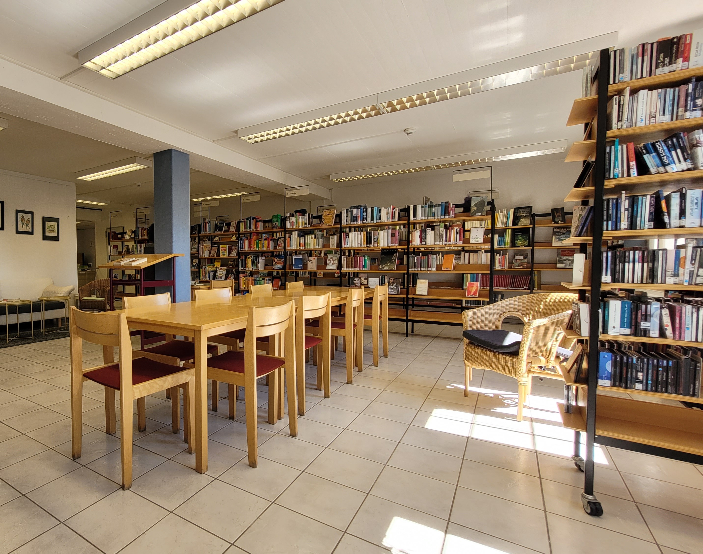 Unsere Bibliothek bietet sich als ein Treff-, Austausch- und Lernort an. Es gibt eine gemütliche Leseecke, eine Kinderecke mit Vorlesesofa und Spielzeugen, 10 Lese- bzw. Arbeitsplätze, freies WLAN sowie die Möglichkeit der bundesweiten Fernleihe.