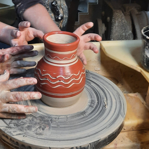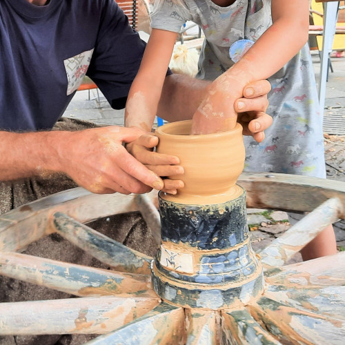 Ich bringe die Menschen mit den Wurzeln der Töpferei und der Keramik in Berührung (Erde, Schlamm, Werkzeug...) und begleite sie beim Gestaltungsprozess.