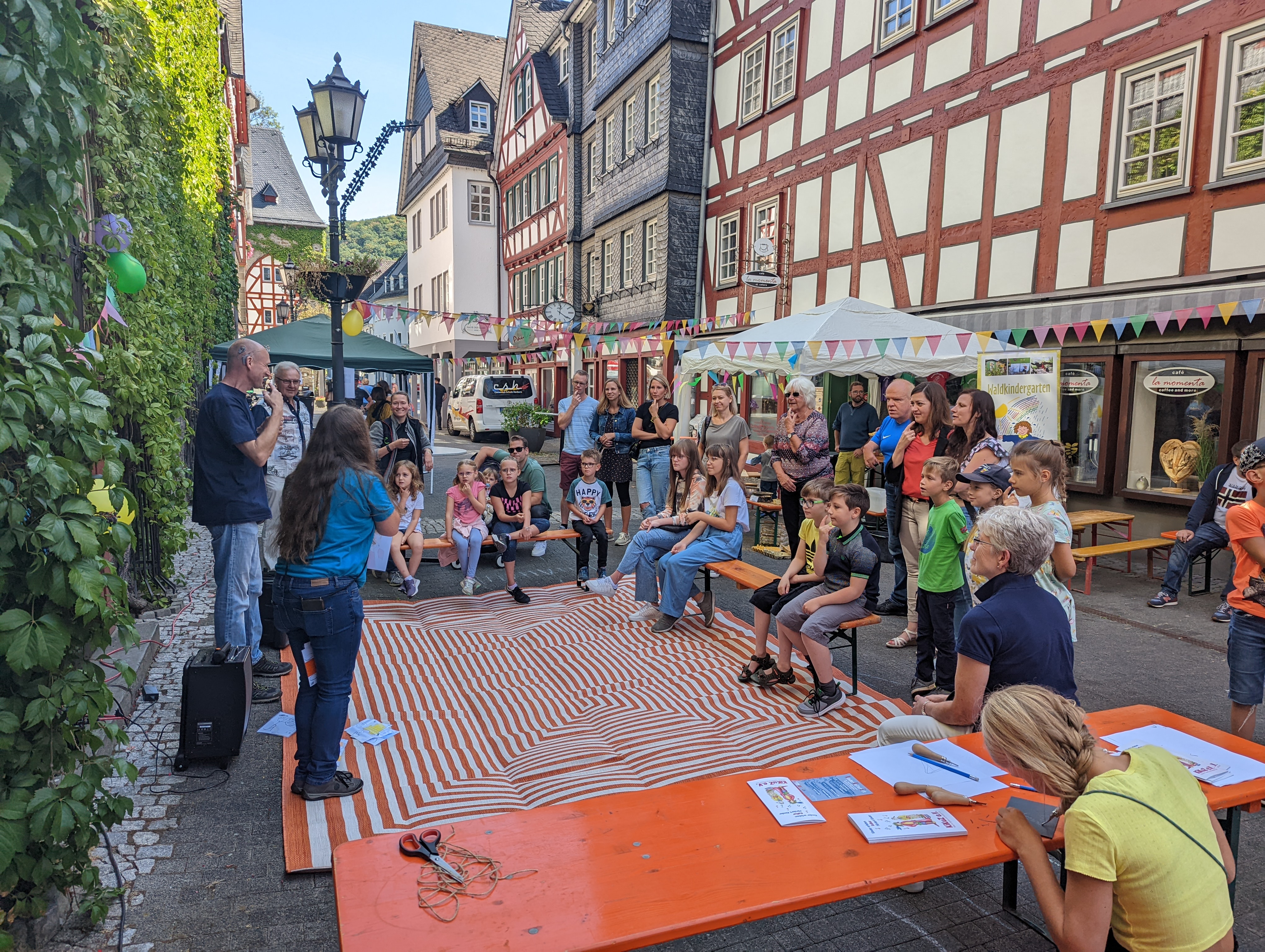 Im Rahmen der Kinderkulturecke waren regionale und kulturell tätige Vereine und Organisationen vertreten und präsentierten ihre Arbeit. Ganztägig wurden das Erstellen von Samenbomben, Linoliumdruck und die musikalische Früherziehung oder Schlagzeugspielen für Anfänger angeboten. Jeweils zur vollen Stunde zusätzlich der Einstieg in die Gebärdensprache, Mitmachmärchen und Kinderzumba.