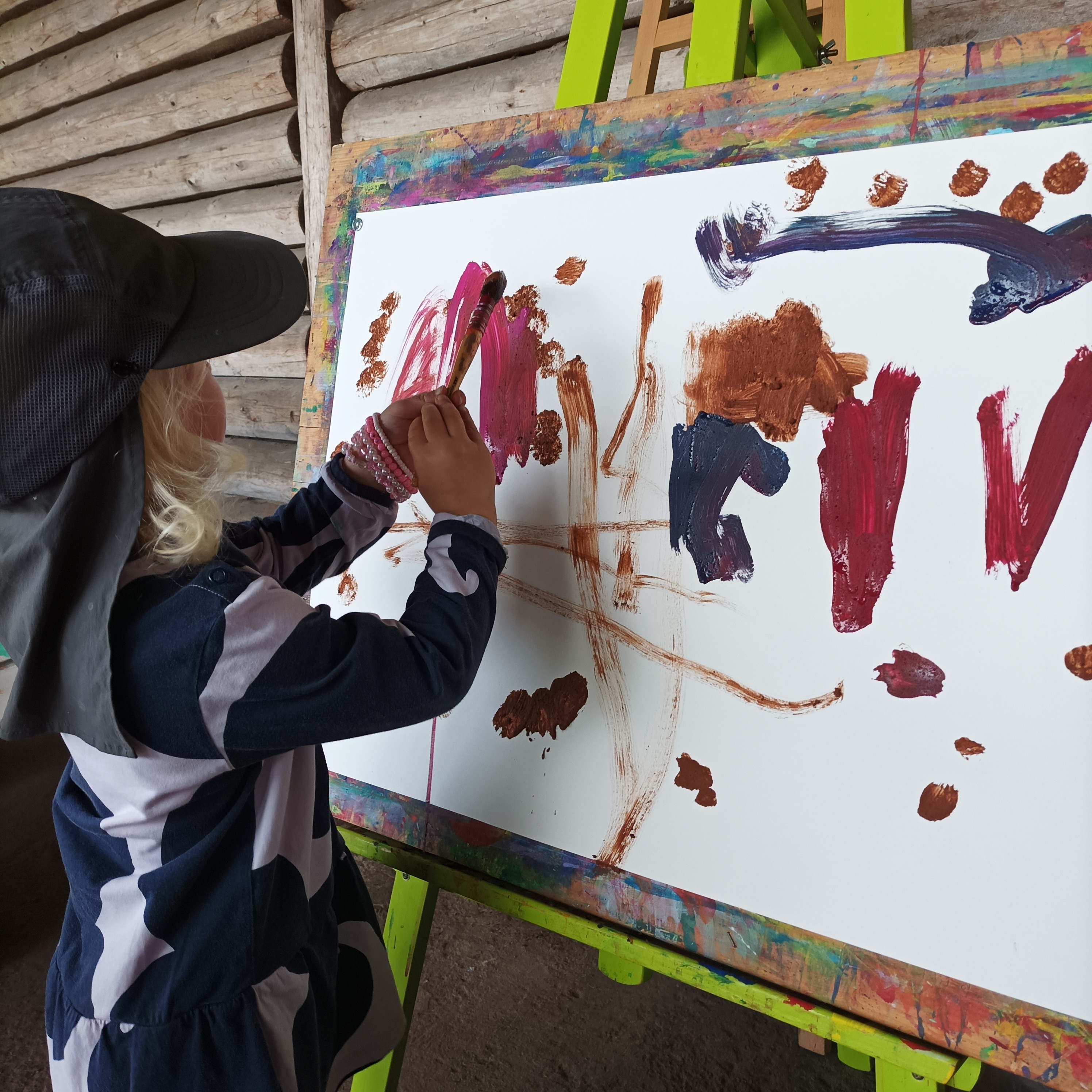 Ohne feste Vorgaben konnten die Kinder ihrer Fantasie freien Lauf lassen und mit Hilfe von Naturmaterialien und 18 leuchtenden Gouachefarben eindrucksvolle Kunstwerke gestalten. Begleitet wurden sie von engagierten Erzieher*innen, die die gewonnenen Eindrücke und Techniken mit in den Kindergartenalltag nehmen werden.