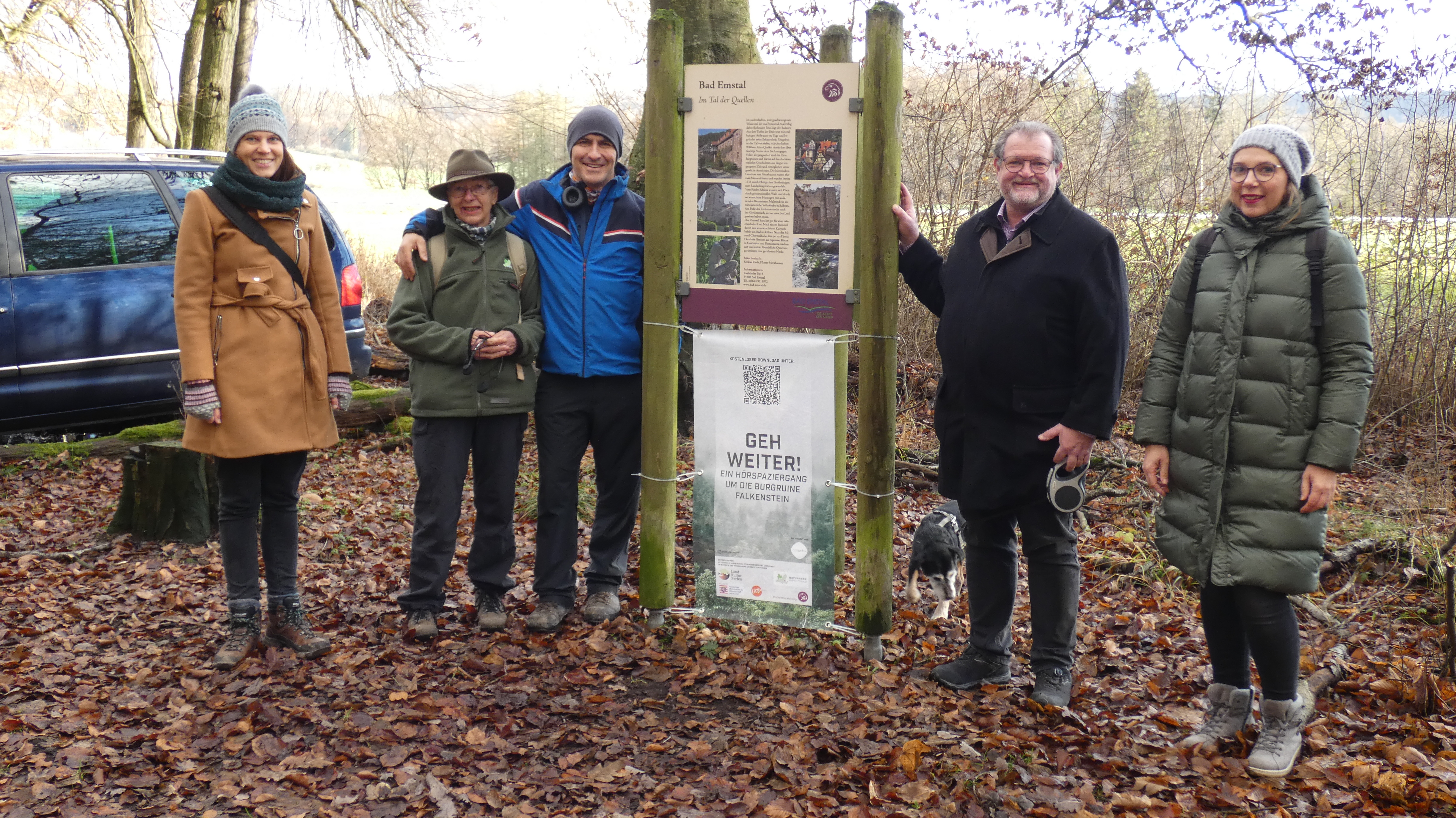 Der öffentlich zugängliche Audiowalk steht kostenlos für alle Interessierten mittels kostenfreier App niederschwellig und zeitlich unbegrenzt zur Verfügung. Dafür einfach die kostenfreie App izi.travel und darin den kostenlosen Audiowalk "Geh weiter!" herunterladen. Der Walk ist intergenerativ angelegt und richtet sich an Kinder und Erwachsene mit Märchen, Informativem über den Wald und den Umweltschutz, Gedichten und Erzählungen der Workshopkinder. Der Hörspaziergang ist ein Erlebnis für die ganze Familie und ist auf einer Länge von ca. 2,9 km in etwas mehr als einer Stunde zu erlaufen. Start ist der Wanderparkplatz Falkenstein. Nach der Hälfte der Wegstrecke gibt es einen Märchenrastplatz auf der Burgruine, der zum Picknick einlädt.