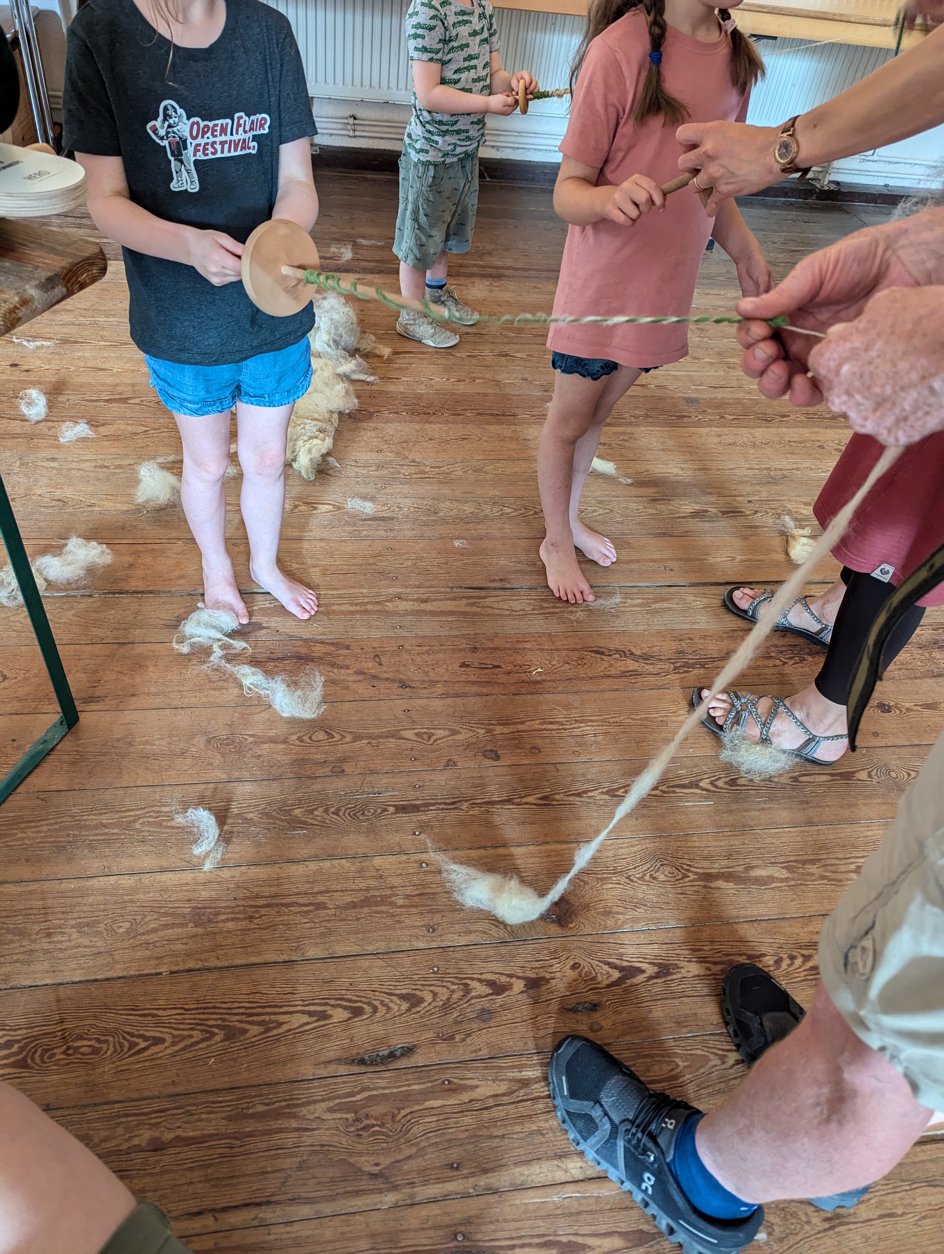 Besonders gelungen im Projekt ist das haptische Erleben - die Kinder wuschen die Wolle mit ihren nackten Füßen, fühlten das Wollfett an ihren Händen und nutzten motorische Fähigkeiten beim Spinnen und Filzen. Der Prozess der Erstellung des Wollbeutels konnte vom Ursprung an miterlebt werden und bot so eine neue Sichtweise auf den Rohstoff Wolle.