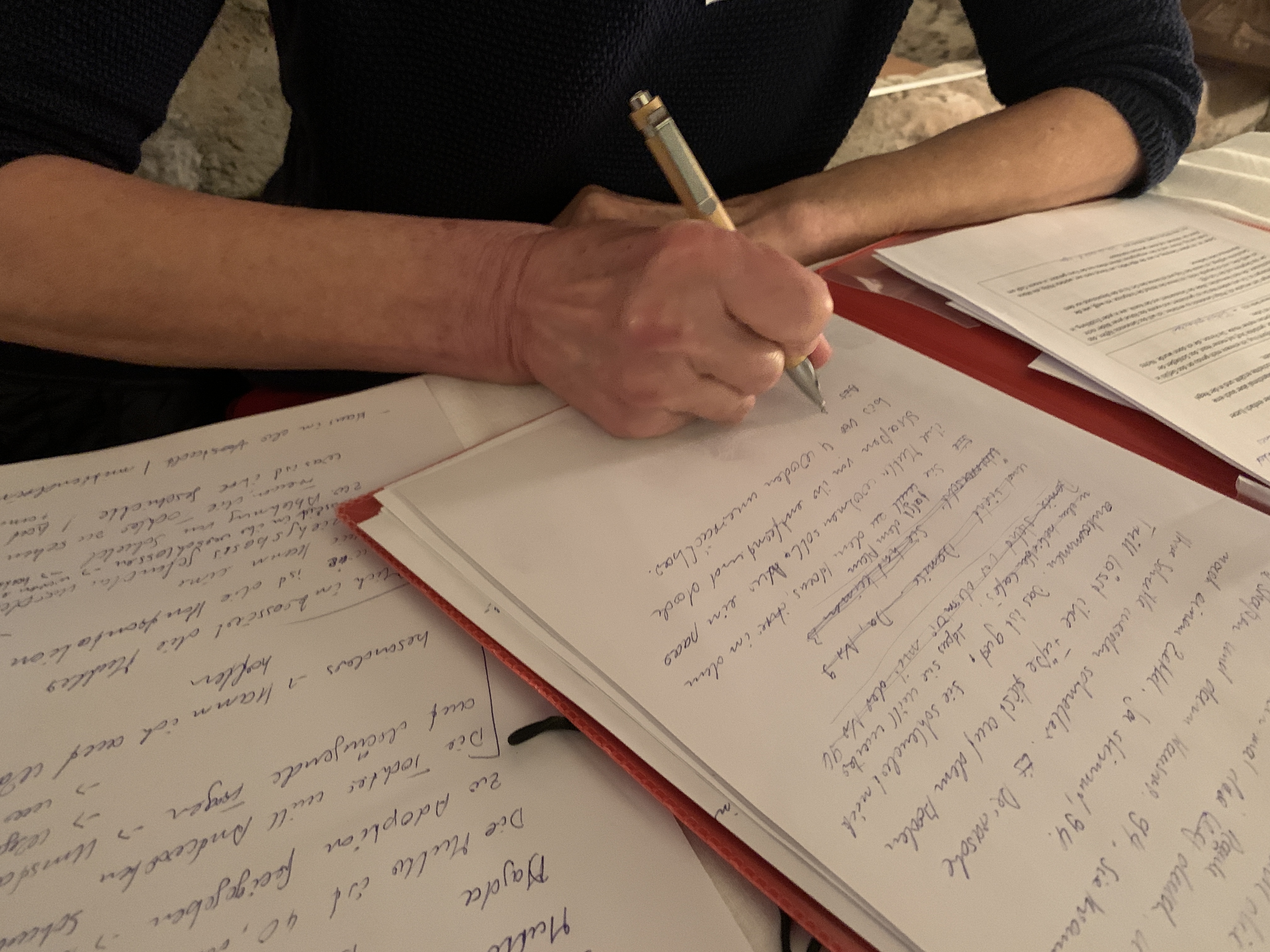 Die eintägige Schreibwerkstatt am Sonntag war innerhalb kurzer Zeit ausgebucht. 15 Teilnehmende im Alter von 14 bis 80 Jahren (14 Frauen, 1 Mann) nahmen daran teil. Die Gruppe brachte sehr unterschiedliche Schreiberfahrungen mit – von ersten Texten bis hin zu bereits veröffentlichten Büchern.