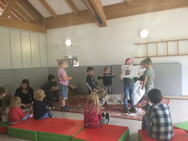 Mit dem evangelischen Kindergarten in Birkenau wurde zuerst unter Anleitung von Regisseur und Dramaturg Jürgen Flügge ein zwei-tägiger Theater-Workshop mit Erzieher*innen im Hof-Theater-Tromm veranstaltet, um in das Thema „Spiel und Improvisation“ einzuführen. Danach erfolgte der Besuch im Kindergarten und eine intensive Klang-Erforschung des Materials Zeitungspapier mit zwei Kindergruppen. Die Geräusche des Papiers - das Rauschen, das Knistern, das Falten - wurden entdeckt.
