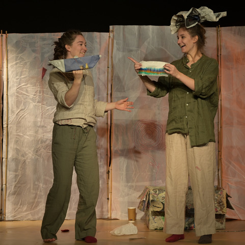 Im Anschluss haben die Schauspieler*innen aus der Erfahrung zusammen mit Jürgen Flügge ein kleines Theaterstück mit dem Titel GEKNITTER GEWITTER entwickelt.