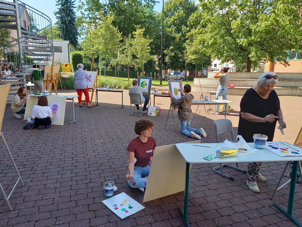 Mittels einer gewählten "Kunstvermittlerin" aus der älteren sowie der jüngeren Generation schaute man sich nach gemeinsamer Mittagspause die Ergebnisse an und tauschte sich so über Ansichten, Wünsche, Vorstellungen etc. aus.